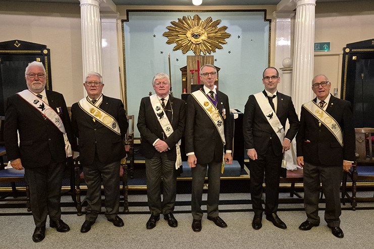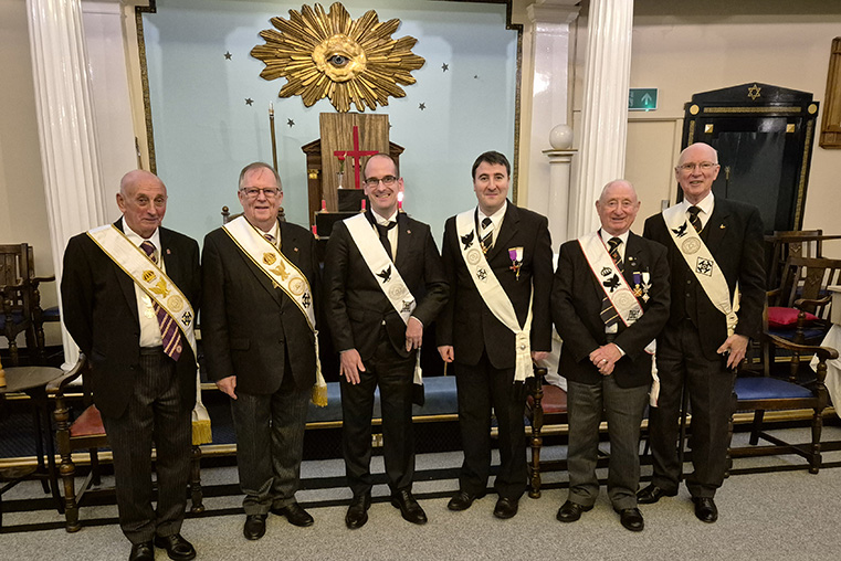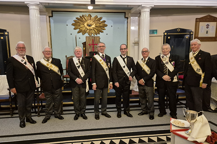 | The meeting for St Helena would normally have been the Enthronement Meeting. With the Puissant Sovereign, Tony Prior staying in post to serve another year along with Stephen Gregory staying as Viceroy it didn’t take long to do the proclamation, or to invest the officers of the year. | |