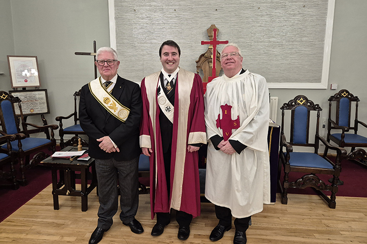 | P.Kt John Roughley, opened the Conclave and quickly discharged the administrative business ably assisted by Ill. Kt. Colin Rowling the Recorder and P.Kt. David Hickman, the Marshal. | |