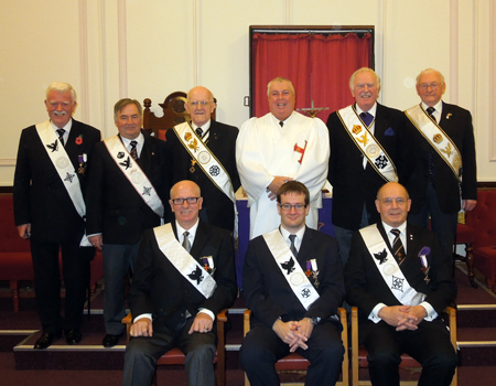 The Conclave was then closed by virtue and a Sanctuary opened to confer the degree of Knight of the Holy Sepulchre to Worthy Knights Dr. Robert Caudwell, Paul Hardman, and Ken Smith. Which I am reliably informed was completed in an exemplary manner by Iain. The Sanctuary was then closed and the Commandery was opened where the Degree of Knight of St. John the Evangelist was conferred on the same Worthy Knights by Gordon Kay and Roy Crowder in a splendid and meaningful ceremony. | |