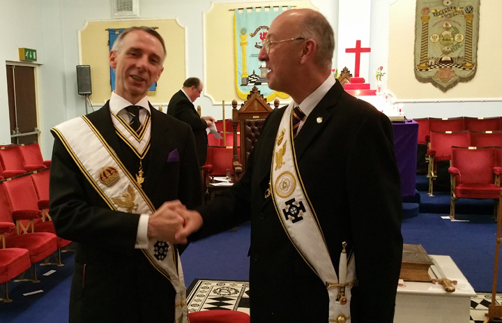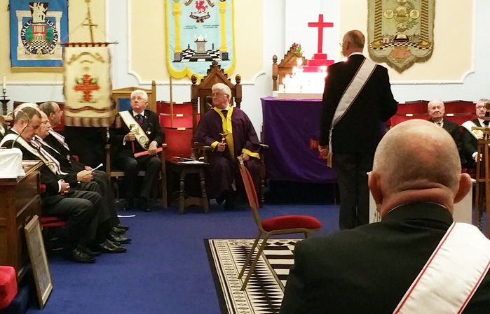 He then went on to appoint or reappoint 28 further members of the team and 9 Appointments to Past Rank. In no time at all the new Marshal was assembling the retirement procession and we all retired to a pleasant meal which allowed us time to reflect on the mornings events and how much we all enjoy our Red Cross Masonry. |
