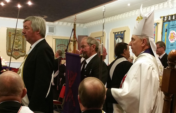 The Processions started with Visiting Intendants General and other VIP’s entered the Divisional Conclave. Very soon the Marshal Graham Williams called the Knights to order and the Intendant General was escorted into the Conclave by the Officer of the Division. | |