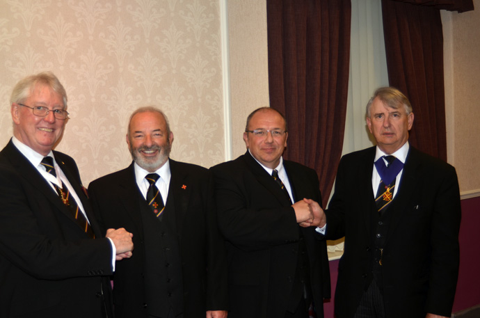 The First Pont conducted in an excellent by the Most Puissant Sovereign, P Kt Ian Clark ably assisted by the Viceroy E Kt Patrick J Walsh. P Kt John Murphy, Div Swd B, conducted the Second Point, with John's quiet unruffled manner. | |