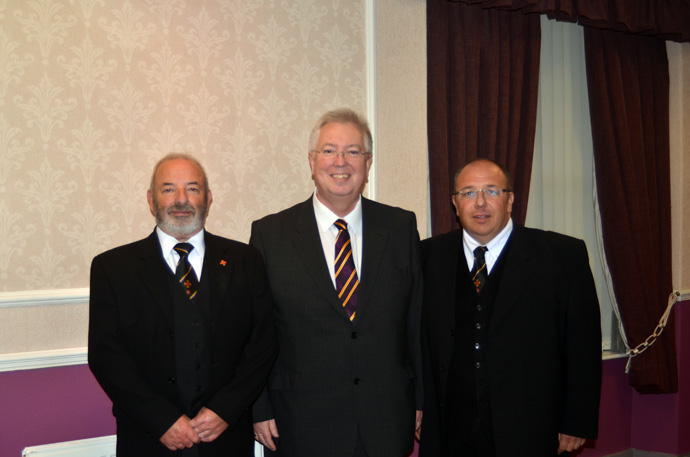 P Kt Ian Clark MPS congratulates W Kts Peter Benson and Graham Greenall , | |