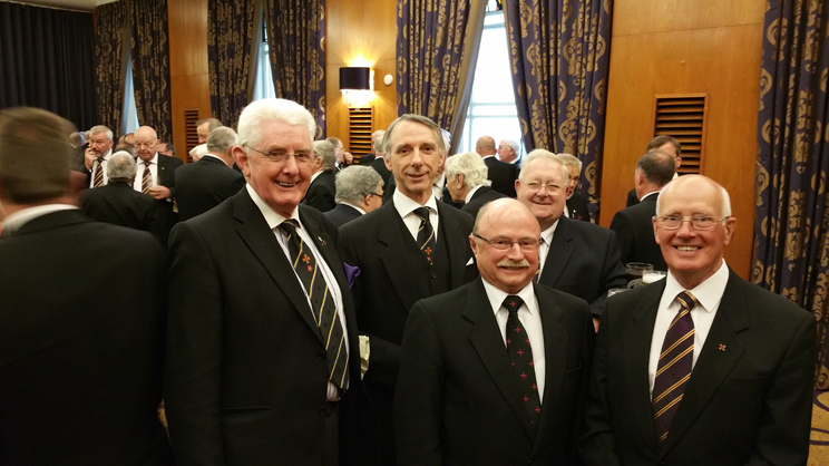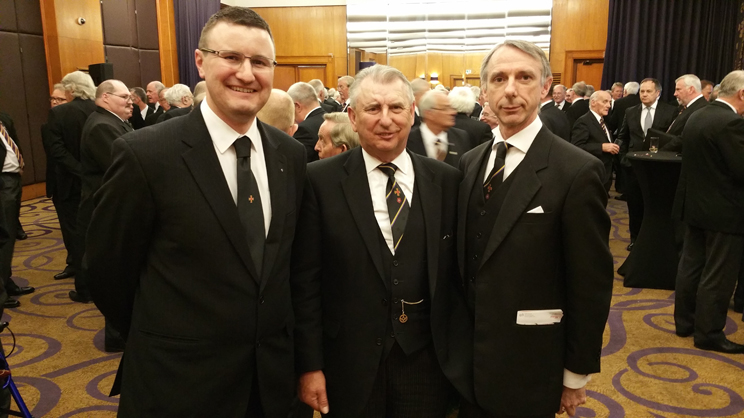 "There followed a dinner", so into the Connaught Rooms were we met Ill Kt Ray Howarth, Mike Beesley, Gary Horseman, Wayne Pearson and not to forget Rt Ill Kt Tom Jackson. After drinks in the bar we sat down to an excellent dinner which was enjoyed by all present. | |