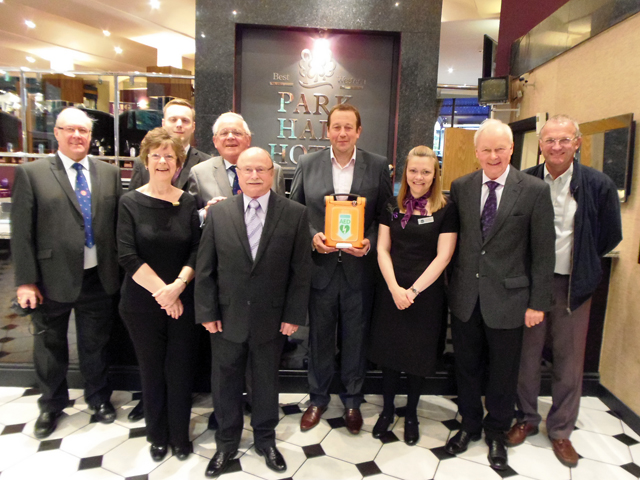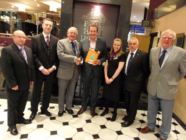 It has been the object of the West Lancashire Mark Province, to ensure that a defibrillator is available in every Masonic Hall and meeting place in the Province. Our recently retired P.Prov.G.M., RW. Bro Peter Connolly presented the 23rd Defibrillator to Simon Doughty the Operations Director of the Lavender Hotel Group. The owners of the Park Hall Hotel. Supporting Peter were V.W. Bro Michael Clarke P.G.J.O. Asst. P. G. M. Chairman of West Lancashire Mark Charities and V. W. Bro Stuart Cowburn P.G.J.O. Leader of the Ionic Charity Group. Now you may ask why were we giving a Defibrillator to a Hotel. Well the answer is quite simple. | |