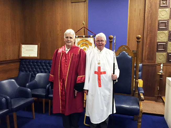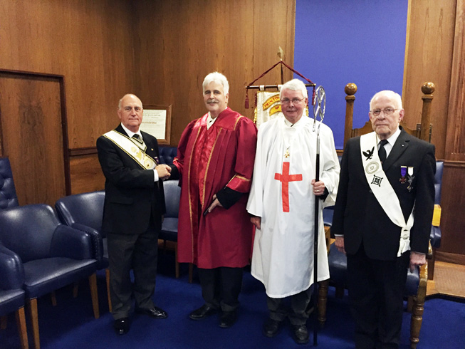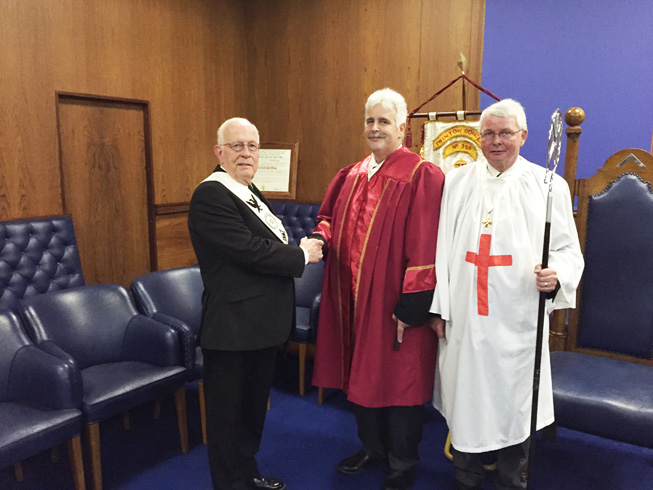 The Divisional Recorder Ill Kt Neil Cooper, P G W of Reg. was treated to a delight at Swinton Conclave Enthronement meeting on Monday, 26th October 2015, when he had the honour of Representing the Intendant General, Rt Ill Kt Michael Robert Walker. | |