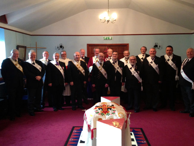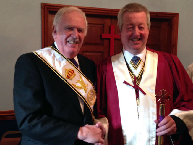 Ill. Kt. John David Roberts, PGWofR and Divisional Eusebius, represented the Rt. Ill Intendant General on this occasion, and, following the conclusion of the ceremonial, warmly congratulated the MPS and Viceroy together with all the Officers invested. He also thanked those involved in conducting the ceremonies for a wonderful evening of Red Cross Masonry. | |