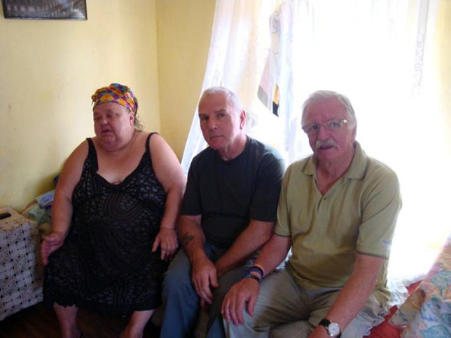 Right photo Pete being shown upstairs room by mother Irina, room not used in summer too hot to sleep, everyone sleeps downstairs. | |