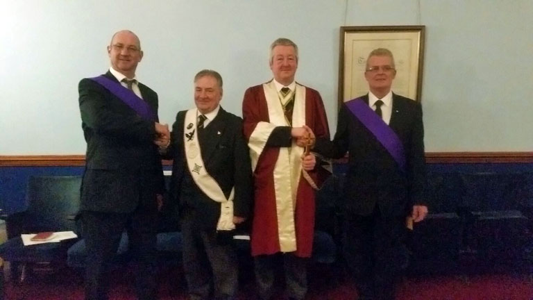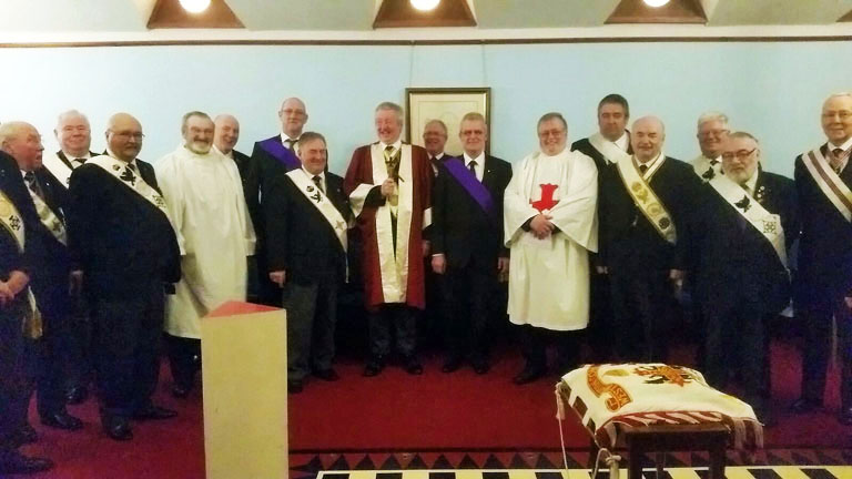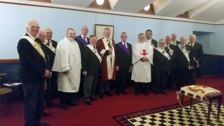 A well-attended Westhoughton Conclave was delighted to welcome two new Worthy Knights to the Red Cross Order in the presence of P. Kt. Evan Walsh, Senior General of the Division of West Lancashire, who was representing the R. Ill Intendant General on this occasion. Evan was supported by a number of W. Kts. from his own Conclave, Dr. W.R. Waters 269, as well as other guests and Westhoughton members. The Conclave was also honoured with the presence of both a Past Intendant General, R. Ill Kt. Ken Shaw and a Past Deputy Intendant General V. Ill Kt. Geoffrey Porter, both of whom are members of the Conclave and participated in the evenings proceedings. | |