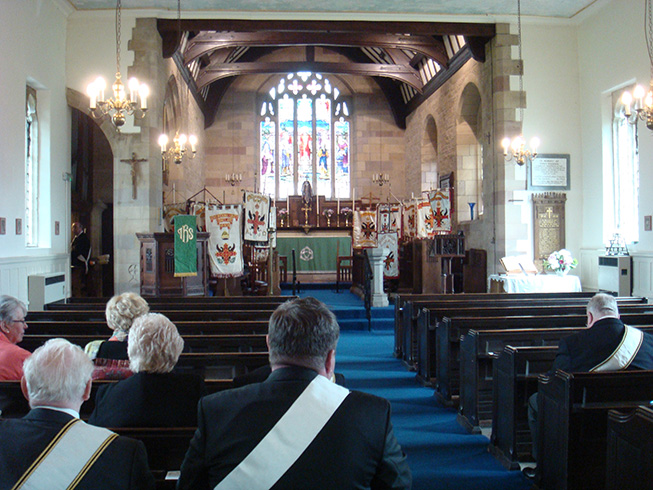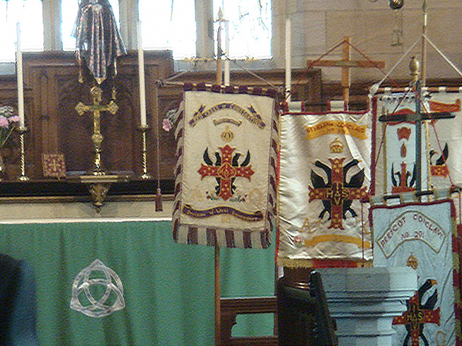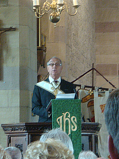 The Conclave Standards were placed in the Chancel prior to the service commencing. The procession into the Church, led by the Deputy Intendant-General, in lieu of the Intendant-General who is still incapacitated, was organised by Ill. Knight Geoff Gill, the Divisional Marshal, ensuring everyone was in the correct position, to facilitate us all fitting into the Church. | |