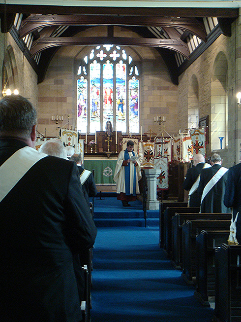We were welcomed, by Eminent Knight Gratten Williams, Divisional Organist, and a Reader in the Diocese of Liverpool, who led the Service, ably supported by Ill.Kt. Jack Gore, P.G.Vice-Chamberlain, acting Organist for the day. | |