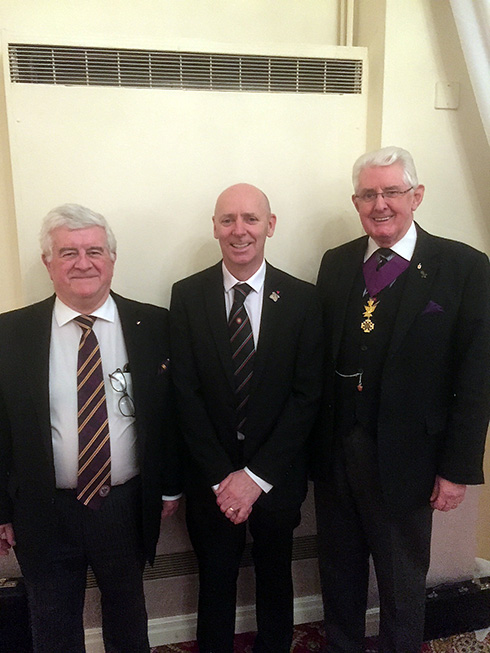 On Friday 1st December 2017, Sovereigns Unity Conclave meeting at Leyland Masonic Hall, once again hosted the Divisional KHS Ceremony, in the presence of the Intendent General R. Ill. Kt. Michael Walker and the Deputy Intendent General. V. Ill. Kt. Fred Hargreaves, seen here greeting the candidate Worthy Knight Ian McGovern. |