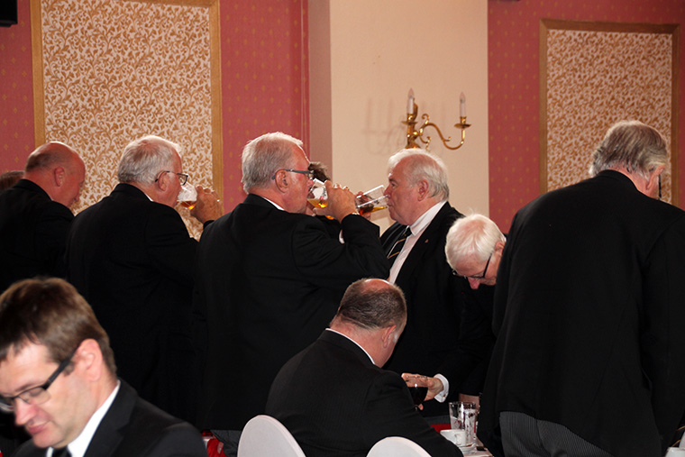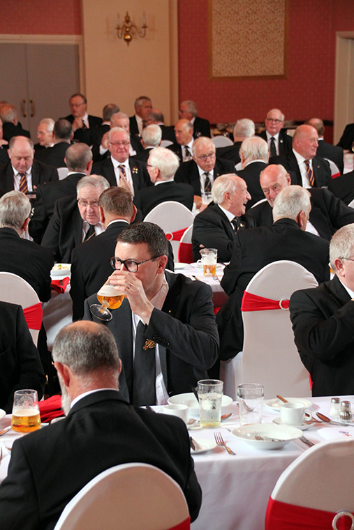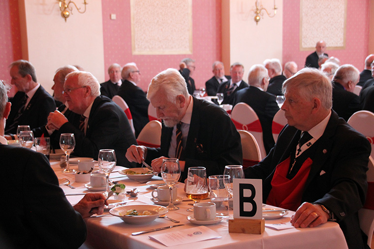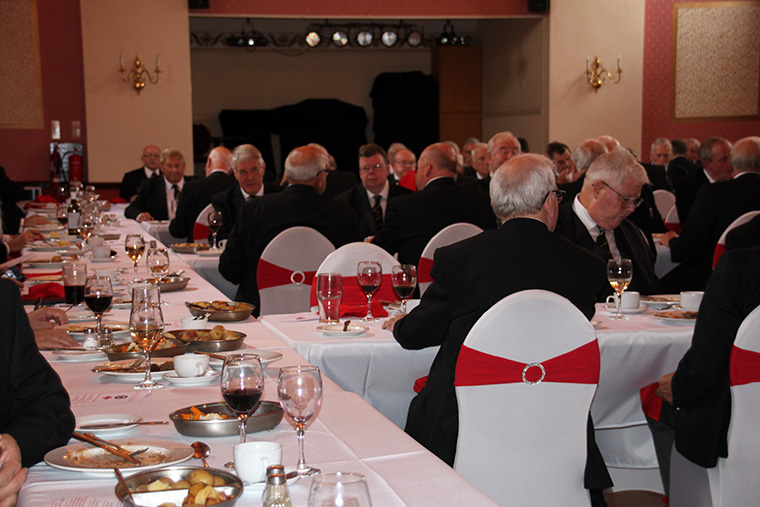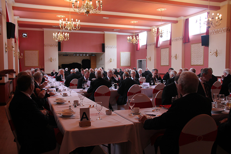 After the business of the meeting had been concluded we retired to the banquet which consisted of Caesar Salad, followed by Braised Steak, Pancake with Cherries and Ice Cream, Cheese and Biscuits and Tea or Coffee. A super meal prepared and served by the staff at the hall. | ||