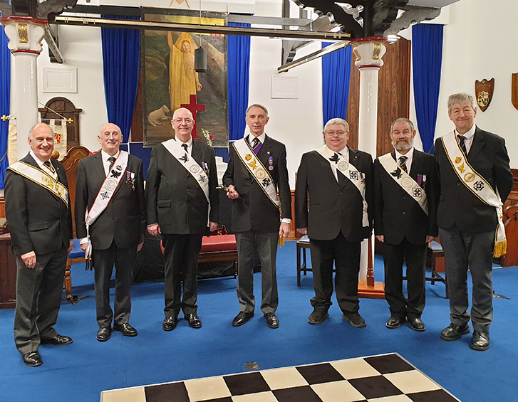 The three knights who benefited from the demanding work described were, Victor Hudson Foulds of Ormskirk Conclave No 294, James Robin Upshon of Rose Hill Conclave No 298 and Alan O’Connor of Swinton Conclave No 355. They can not fail to have been impressed by the quality and sincerity of the ritual lavished upon them. | |