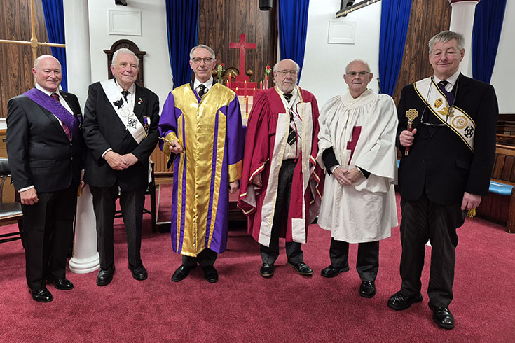 Knights from all over the Division along with the Divisional Intendent General, R.Ill Kt Graham Edwin Williams, his Deputy V.Ill Kt Stephen Mark Gregory the team and Sepulchre Guard led by Ill. Kt. Jason Nash assembled at Chorley Masonic Hall in readiness of busy evening of Red Cross Masonry. | |