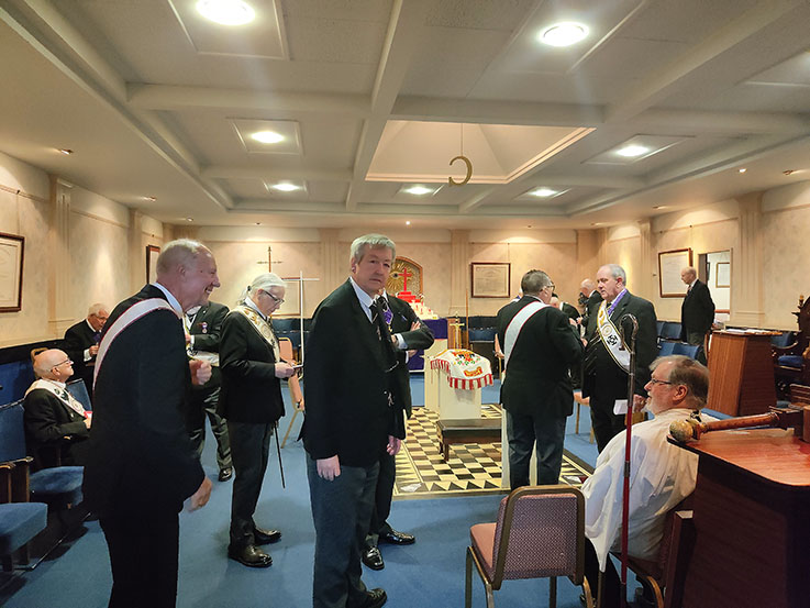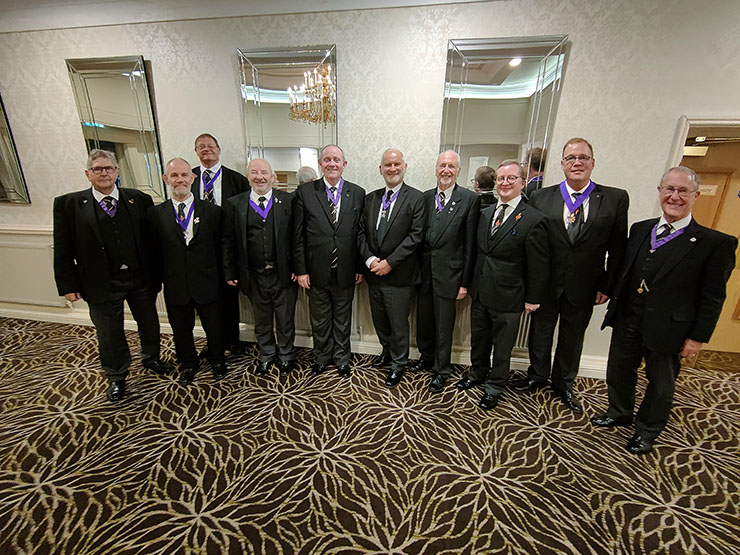 Not even typically torrential Lancashire weather could prevent a host of Red Cross Knights from descending on Brookfield for the final team visit of the masonic year, this time to Westhoughton Conclave 254. The team were out in full force, though a number had jobs to do in the Conclave that evening. We almost had to proceed without the principal guest, Intendent-General Graham Williams who endured cancelled trains, delayed flights and an incident on the M6 to make it to the Conclave on time. A story worthy of Hollywood, surely! | |