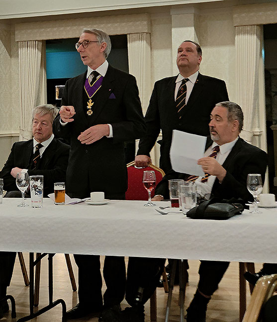 In responding to the toast to the Candidate, Worthy Knight David Hargreaves expressed his thanks to everyone who took part in the ceremony and provided an anecdote about the recruitment technique of the Deputy IG, which I am sure will have been educational (and possibly familiar) to all present! | |